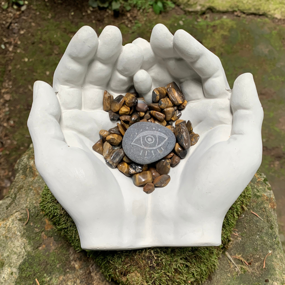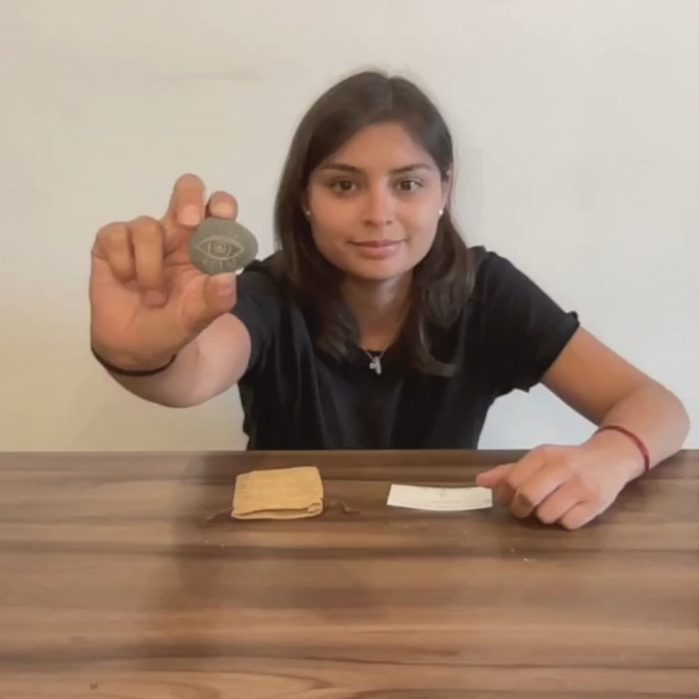 🌟 Piedra Ojo Protector: Una piedra única grabada a mano con el símbolo de protección, perfecta para acompañarte en tu día a día.