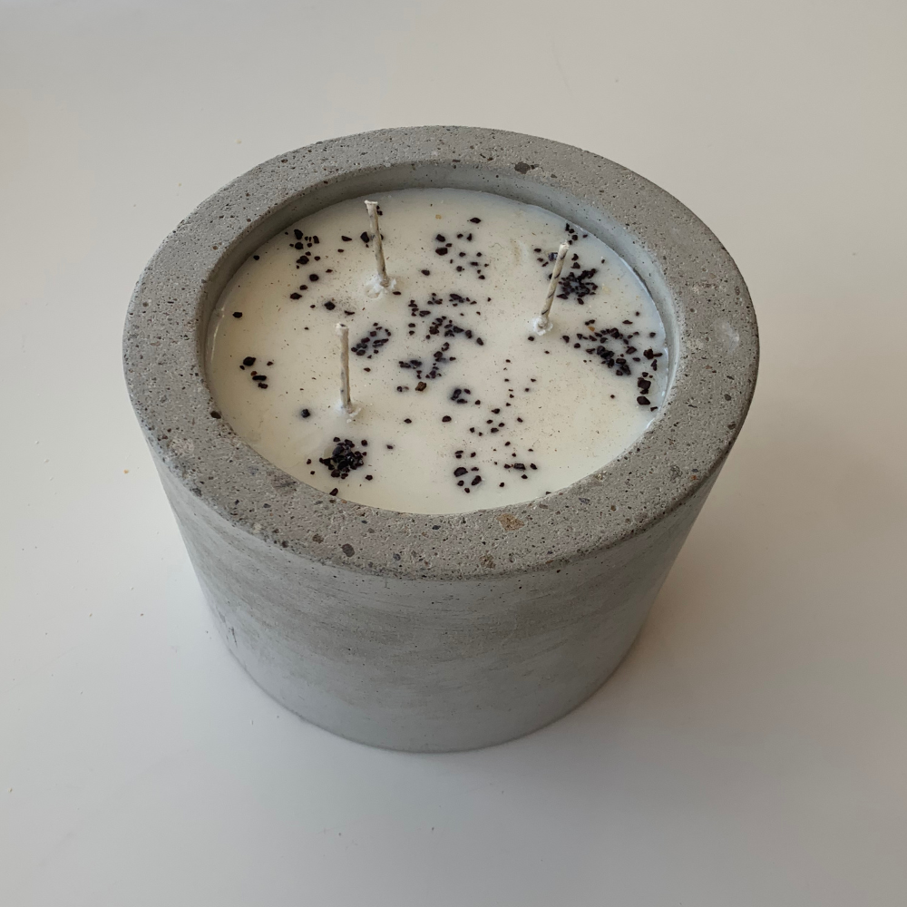 🕯 Vela XL (15 cm de diámetro x 10 cm de alto, aprox. 2.4 kg) con fragancia a vainilla-café.